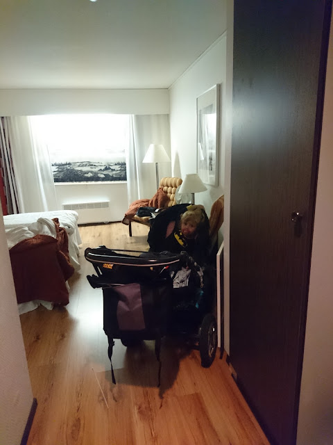 Vårt hotell låg på vägen till killarnas stugor bara tre minuter från båten så micke släppte oss först och vi gjorde iordning oss på en gång och gick och la oss.